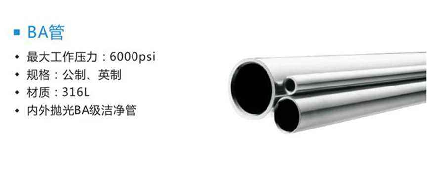 不銹鋼BA管――Bright Annealed tube,又稱潔凈管,它是氣氛保護(hù)熱處理(Bright Annealed)的簡稱。這種管現(xiàn)在被廣泛使用在半導(dǎo)體行業(yè)、液晶行業(yè)、太陽能行業(yè)、藥品行業(yè)、醫(yī)療行業(yè)等的潔凈或無塵室或者設(shè)備方面。
