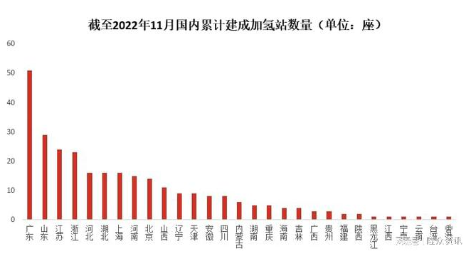 截止2022年11月國(guó)內(nèi)累計(jì)建成加氫站數(shù)量